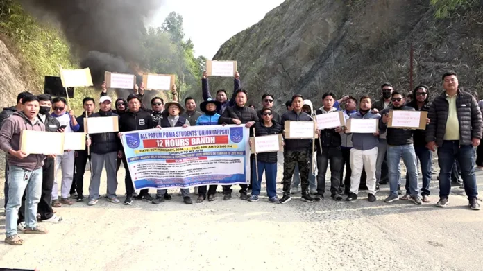 POMA, 5 Feb: The All Papum Poma Students’ Union (APPSU) on Thursday enforced a 12-hour bandh, protesting the alleged delay in construction of six sanctioned bridges on the Itanagar-Jote road.