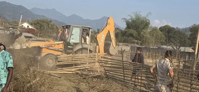DAPORIJO, 13 Feb: All illegal and unauthorised structures near the airfield area here in Upper Subansiri district were dismantled during an eviction drive carried out by the district administration on 12 February.
