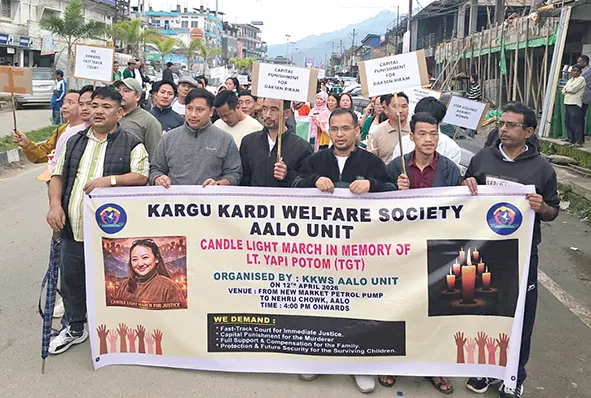 On Sunday, members of over 45 organisations and associations organised a peaceful candlelight march in Aalo town, demanding capital punishment for the accused.