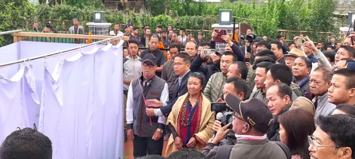 The statue was adorned with traditional white scarves and marigolds, while three black granite plaques nearby narrate his journey from Tajang village to serving in the Indian Air Force, it said.